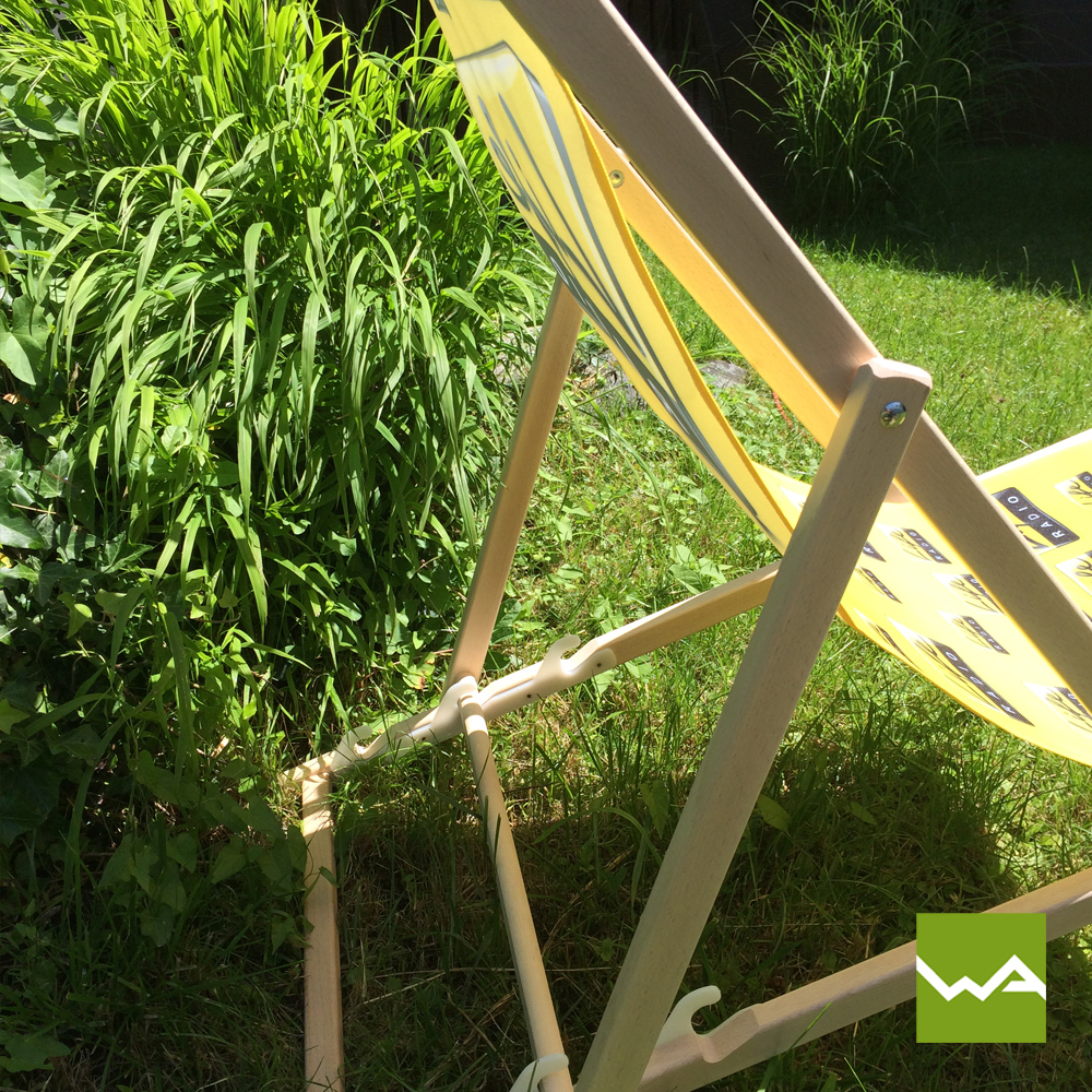 Ursprünglich als Deckliegestuhl für Kreuzfahrtschiffe gedacht, ist der Klappliegestuhl mittlerweile viel mehr als nur ein Rückzugsort für Sonnenanbeter. Holzliegestühle mit gebrandeten Sitzflächen gehören heutzutage zum gewohnten Erscheinungsbild einer jeden hippen Sommer-Bar oder Après-Ski Hütte. Nicht ohne Grund. Denn die Liegen sind nicht nur sehr praktisch in der Handhabung, sondern generieren in der entspannten Atmosphäre dieser Lokalitäten einen besonders hohen Werbewert. Diesen Effekt möchte sich nun auch unser Kunde Life-Radio zu Nutze machen und setzt auf unsere bedruckten Liegestühle.