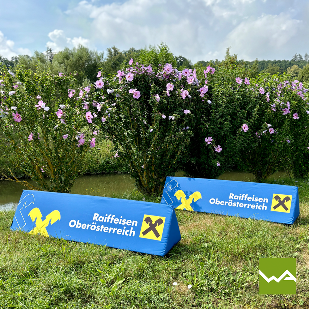 Advertising barriers with a foam core, also known as foam barriers, soft barriers, or A-boards, prove to be outstanding advertising media for various sports events, including soccer, volleyball, golf, basketball, handball, and many other disciplines. Their strategic placement right next to the playing area not only ensures optimal visibility but also protects athletes since they pose no danger. The immediate proximity to the athletes offers a unique opportunity to focus advertising messages and subtly convey them to the viewer. The emotional connection between sport and spectator is strengthened as the advertising is not only seen but experienced. Through this intense contact, the message is firmly anchored in the audience’s consciousness.