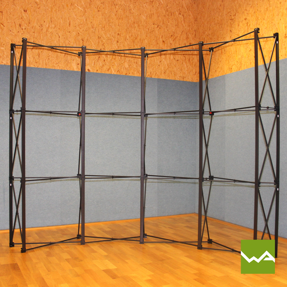 The Pop up Magnetic trade show wall is made of a very high-quality powder-coated scissor grid system, where all connections are screwed instead of riveted. Additionally, the advertising wall is equipped with strong neodymium magnets. This ensures that the wall stands stably and does not wobble.