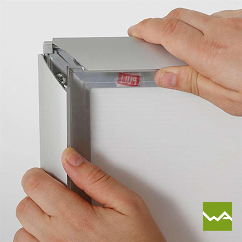 Dank der fortschrittlichen Technologie des Gehwegaufstellers SWING TANK gestaltet sich der Motivwechsel mühelos. Der Klapprahmen ermöglicht ein schnelles Einsetzen und Austauschen von Werbematerial, ohne dass hierfür spezielles Werkzeug benötigt wird. Damit haben Sie die Flexibilität, Ihre Werbebotschaften regelmäßig zu aktualisieren und an aktuelle Angebote oder Veranstaltungen anzupassen.