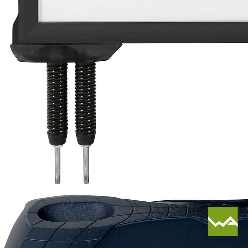 Der Kundenstopper SWING TANK vereint robuste Konstruktion mit intelligenter Technik, um Ihrer Werbung maximale Präsenz zu verschaffen. Mit seinem massiven Wassertank bietet er eine unerschütterliche Standfestigkeit, selbst bei extremen Wetterbedingungen. Durch das Befüllen des Tanks mit Wasser wird der Kundenstopper gegen Windböen nahezu immun, während die Klappenfedern zusätzliche Stabilität bieten, indem sie starke Windböen abfedern.