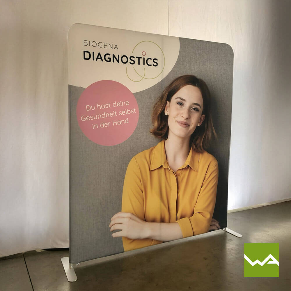 Ja, absolut. Der bedruckte Stoffbezug ist einzeln erhältlich und kann jederzeit nachbestellt und ausgetauscht werden. Das bedeutet: Bei einem Logowechsel oder einer neuen Kampagne muss nicht die ganze Wand ersetzt werden – eine kostengünstige und nachhaltige Lösung!