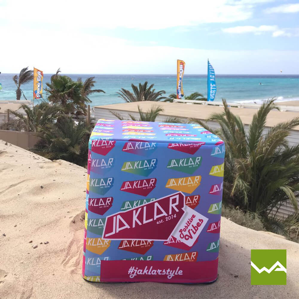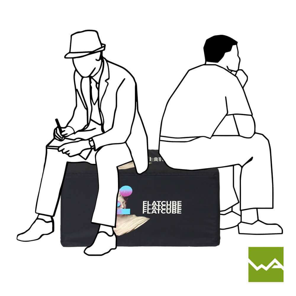 Der faltbare Würfel Flatcube ist ein klappbarer Sitzwürfel, der sich platzsparend lagern lässt, individuell bedrucken, selbst gestalten, bestellen und kaufen lässt – ideal für Events, Messen und Promotion.