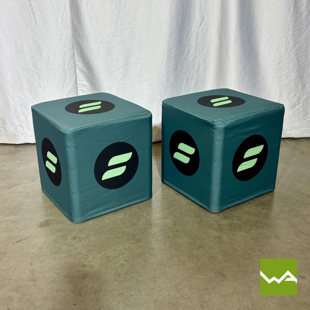 Dank individueller Gestaltung lassen sich faltbare Sitzwürfel exakt auf jedes Event-, Raum- oder Werbekonzept abstimmen.