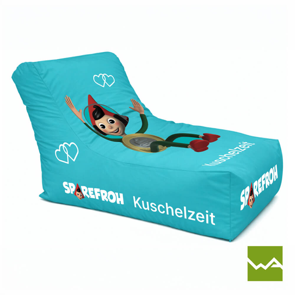 Eine Sitzsack Liege eignet sich für Marken, die eine entspannte, moderne Präsentation suchen. Ideal für Agenturen, Gastronomie, Tourismus, Sportveranstaltungen, Events, Start-ups und alle, die ein auffälliges, funktionales Werbemittel bedrucken lassen möchten.