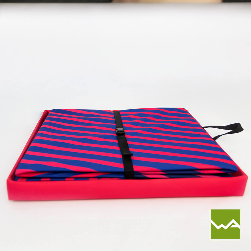 Ein großer Vorteil des SmartCube als Sitzwürfel mit Stauraum ist der austauschbare Bezug. So kann derselbe Sitzwürfel für verschiedene Kampagnen, Marken oder Events genutzt werden, indem einfach ein neuer Überzug aufgezogen wird. Das reduziert Folgekosten, erhöht die Nachhaltigkeit und verlängert die Lebensdauer des Produkts, da nicht das komplette Möbelstück ersetzt werden muss. Besonders für Unternehmen, die den Sitzwürfel mit Stauraum regelmäßig einsetzen oder neu bedrucken lassen möchten, ist dieses System wirtschaftlich und flexibel.