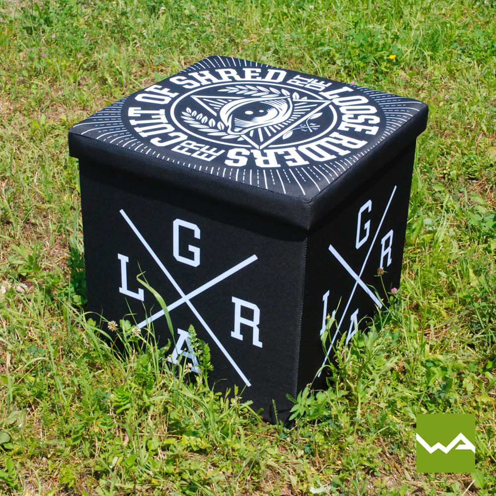 Auf Wunsch unterstützen wir Sie auch bei der Gestaltung oder übernehmen das komplette Design, wenn Sie den Sitzwürfel mit Stauraum kaufen und professionell bedrucken lassen möchten.