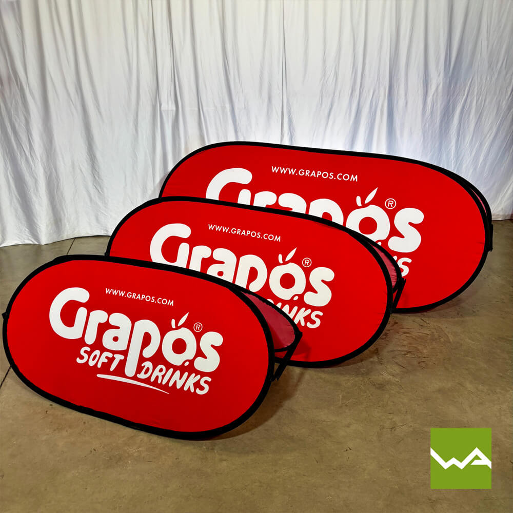 Pop out Banner sind vielseitig einsetzbar – vom Sportplatz über Promotionstände bis zu großen Events. Sie lassen sich individuell bedrucken, durch ihre flexible Form und den einfachen Aufbau sind sie sowohl indoor als auch outdoor sofort einsatzbereit.